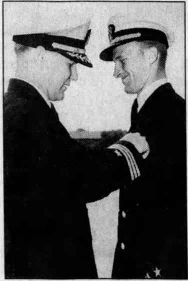 Bryant L. Walworth pinned by Commander Wilson M. Coleman. Courtesy of the Walworth Family