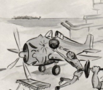 Over the course of his two months with Flight 65, Walworth flew 95 hours and received above-average marks for his plane handling and readiness for combat. He learned division flying principles with two pilots he’d meet again in Fighting 18—Amerman and Burley. And he got his first taste of the dangers of flying on Sunday, 16 May 1943, when his plane veered off the runway. Fortunately he came away from the experience with just a scraped wing.