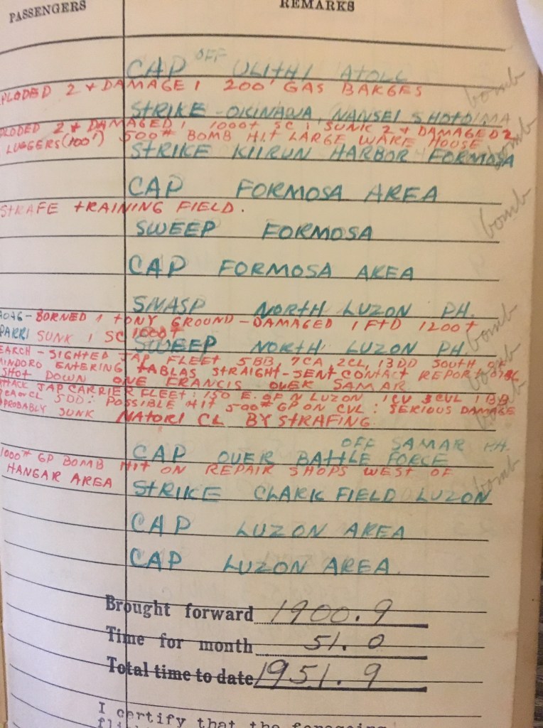 Another plane was also hit over Cebu: Wally Walworth’s. It is on that note we return to the beginning of our story, with our Intrepid hero pinballing his way back to the fleet.