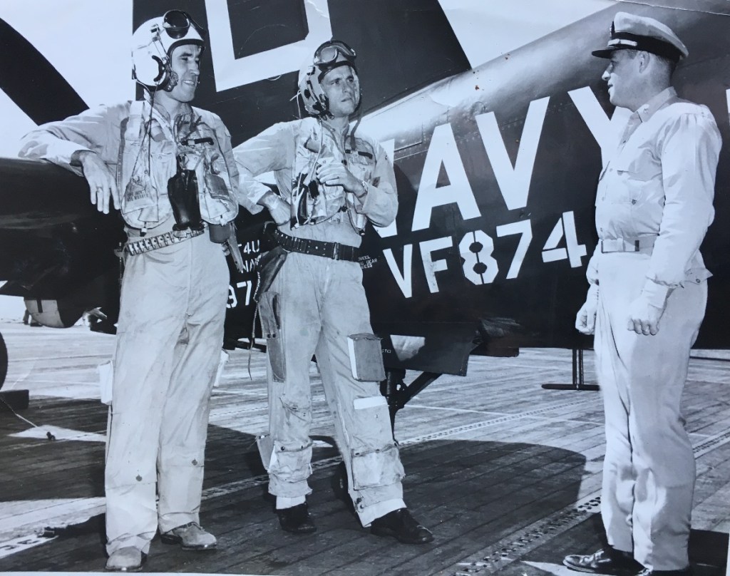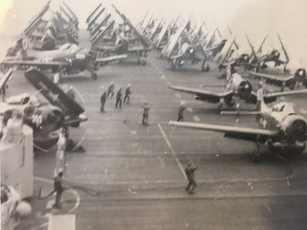 Rubber tires made contact with the ship’s wooden flight deck. There was a bounce or two—Walworth probably braced for impact just in case—and then his plane skidded to a stop in the Number 3 wire. It was a miracle. Bryant remembered during the interview, “…it’s the only time in my life that I ever really saw that whole carrier deck, I was so high, everything was just the perfect picture and I made a perfect landing. But, he gave me a perfect cut.” A little luck and a lot of help from Lt. Moot brought him back home safe and sound.