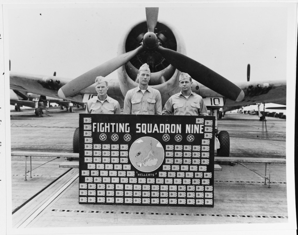 At the completion of operational training, Bryant Walworth, Paul Amerman and Franklin Burley of Flight 65 were sent cross-country to Naval Air Station Ream Field, California, to join VC-18. These young pilots had over 300 hours flight experience each by this point, but they still had much to learn. As original members of the squadron that ultimately became Fighting 18, they witnessed the arrival of Cecil Harris fresh from Guadalcanal to whip the new unit into shape, and the delivery of the new F6F Hellcat, a plane that represented a significant step up from the faithful but increasingly dated F4F Wildcat. After another full year of training, from July 1943 to July 1944, Walworth and company went aboard USS Intrepid in August to begin their inaugural tour of duty—just in time for the last major air and sea battles of the war.